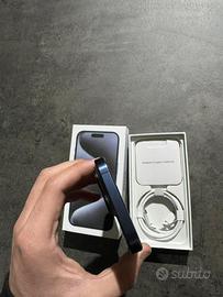 iPhone 15 Pro colorazione Blu titanio. Il telefono si trova in condizioni perfette. Tutte le componenti sono originali e la batteria 100%.