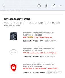 Vendo iphone 15 pro 256 Gb blu per passaggio a iphone 17. Acquistato a maggio 2024 ancora con assicurazione pagata a parte di 310 € per danni accidentali e furto che scade a maggio.