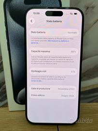Vendo iPhone 15 pro 128gb mai andato in assistenza tutto originale stato batteria 86% completo ti scatola cavo cover e scontrino