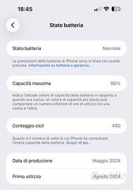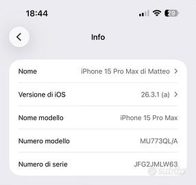 Vendo iPhone 15 Pro Max da 256GB colore nero originale, acquistato ad agosto 2024. ✅ Condizioni impeccabili, sempre tenuto con cura ✅ Completo di scatola e accessori originali ✅ Presente scontrino (utile per garanzia) fino ad agosto 2026 ✅ Inclusi 4 cover + vetro protettivo già applicato + altro vetro 🔋 Batteria in ottimo stato (86%)📦 Pronto all’uso, non necessita di nulla Perfetto per chi cerca un top di gamma praticamente nuovo, senza spendere il prezzo del nuovo. Prezzo leggermente trattabile.
