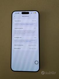 Vendo bellissimo iPhone 15 Pro Max da 256 giga in perfette condizioni Non ha nessun tipo di problema ed è perfettamente funzionante Stato batteria 84% Compreso di cavo di ricarica e sei cover