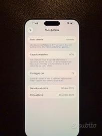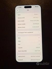Come da titolo vendo iPhone 15 Pro Max 256GB in perfette condizioni,batteria 100% sostituita all Apple Store a dicembre 2025 con soli 73 cicli di carica,vendo per passaggio a modello successivo,no perditempo e no spedizione,scambio a mano zona Latina e dintorni.