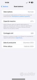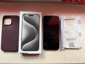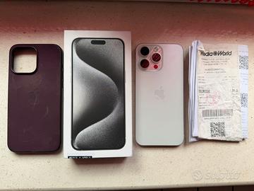 Vendo Iphone 15 pro max 256gb come nuovo ! Acquistato a Mediaworld il 12/02/2024 con scontrino e fattura d’acquisto dimostrabile pagato 1399€. Batteria 87% nessun graffio sempre tenuto con pellicola e cover originale Apple.