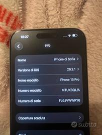 Vendo iPhone 15 Pro in ottime condizioni, utilizzato esclusivamente con cover e pellicola protettiva.