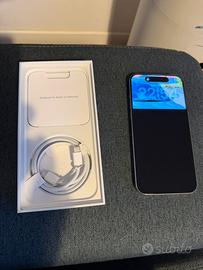 Vendo iphone 15 Pro Max 256 gb , comprato nuovo da me in apple , zero graffi o colpi , dopo l’aggiornamento il display funziona meta’ e in apple mi dicono che da sostituire . Compreso di scatola e cavo nuovo ancora da usare . Vendo 400 euro non trattabile