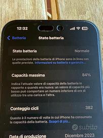 Vendo IPhone 15 promax 256 Gb garanzia fino a febbraio 2026 con scontrino batteria 84% no spedizione prezzo 750€