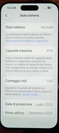 -Apple iPhone 15 Pro 256gb colore titanio nero perfetto neache un graffio con batteria al 87% (senza cavo originale in tela)