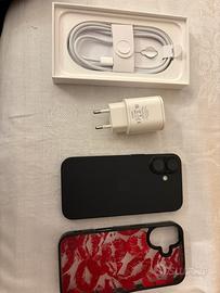 Vendo iphone 16 da 256gb, perfetto, con vetrino sullo schermo già montato. Completo di scatola, cavetto originale nuovo mai usato e caricatore. Colore nero, senza alcun graffio o segno. Batteria 91%. Cover in regalo. Vendo per passaggio a Iphone 17. Prodotto originale Apple.