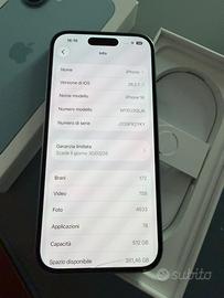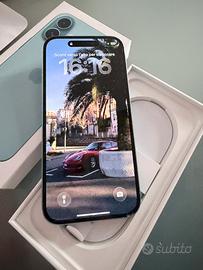 Vendo iphone 16 512gb colore azzurro , come visibile in foto piccola scheggiatura dello schermo che non intacca assolutamente il funzionamento durante l’utilizzo leggermente visibile come da foto.