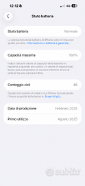 Vendi iPhone 16 Plus Black 256gb comprato nuovo da MediaWorld il 01/08/2025 comprato come telefono provvisorio causa furto iPhone 15 precedente, completo di scatolo, scontrino e cover con cavetto orginale intatto, ovviamente Garanzia italia europa ufficiale Apple 12 mesi. Non presenta ALCUN SEGNO DI USURA. Mai caduto. Sottoscrivo, nessun tipo di problema. Non ho foto esterne in quanto ne sono in possesso come utilizzatore. Vendo per passaggio a 17