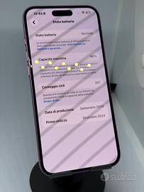 Vendo stupendo apple iphone 16 plus 128gb completo di scatola e filo originale. In perfetto stato funzionale è stato usato pochissimo come dimostra la batteria. Giusto per correttezza piccolo e unico segno sul lato basso a sx come in foto. Per il resto impeccabile.