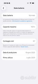 Vendo iPhone 16 Pro in condizioni illibate, pari al nuovo. Telefono usato pochissimo, batteria al 100%, 120 cicli, nessun graffio, nessun segno, sempre tenuto con pellicola e custodia. Esteticamente e funzionalmente perfetto. ✅ Ancora in garanzia ufficiale Mediaworld ed Apple per 1 anno (fornisco scontrino/fattura). ✅ Mai caduto, mai riparato. ✅ Nessun difetto o problema. 📦 Inclusi nella vendita: •Scatola originale •Cavo USB-C originale •Tutti gli accessori originali •3 cover incluse, di cui 2 Apple È praticamente come acquistarlo nuovo, ma a prezzo inferiore. Motivo della vendita: passaggio ad altro modello. Massima serietà, preferisco scambio a mano per far verificare tutto dal vivo. Disponibile anche spedizione tracciata.