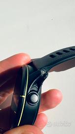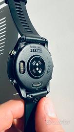 Vendo garmin forerunner 255 music (permette di scaricare musica sull’orologio, anche tramite spotify e ascoltarla offline) perfettamente funzionante ma con un danno alla scocca, come visibile da foto. Si é rotto un pezzettino di plastica che é stato sistemato incollandolo: la rottura è avvenuta qualche mese fa, dopo la sistemazione ho fatto centinaia di km con l’orologio al polso (strada, trail, mare,…) senza alcun problema e limitazione: posso quindi garantire che si tratta solo di difetto estetico e non funzionale.