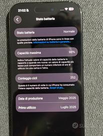 Vendo iPhone 16 pro 256 giga ancora in garanzia completo di tutto. Incluso nel prezzo 4 cover di cui una originale Apple caricatore con alimentatore e pellicola media word istallata fin da subito. Leggero difetto in alto a destra come potete vedere dalle foto ma con cover non si vede per info contattatemi. Per altre foto scrivetemi Prezzo non trattabile astenersi offerte ridicole grazie