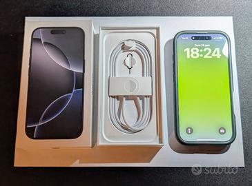 iPhone 16 pro, colore Titanio nero. Dolby visione 4k a 120 FPS, 256 GB di memoria, 5G. Vendo con cover antiurto verde militare + vetro protettivo display già applicato