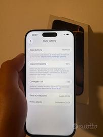 Vendo iphone 16 pro da 256gb colorazione oro vendo per passaggio a 17 pro max, telefono in perfette condizioni usato da mia mamma appena uscito, lunica cosa e stato sostituito lo schermo in un apple store ma con vetro non originale, batteria al 93% dura benissimo ancora una giornata intera, unico proprietario, vendo completo di scatola filo e testina, prezzo leggermnte trattabile, posso spedire tramite subito. per qualsiasi informazione contattatemi grazie!!