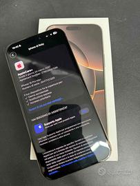 Apple Iphone 16 Pro Max colore Desert Titanium da 1tb. Cellulare in perfette condizione, pari al nuovo. Presente Garanzia APPLE CARE con scadenza 24 Marzo 2027, percentuale residua batteria 96%. Tenuto in maniera maniacale sempre con cover e vetrino anteriore, in più applicate copri fotocamere premium con vetro zaffiro e ulteriore pellicola idrogel sul posteriore. Presente il Box con il cavolo originale nuovo mai usato. Cedo insieme set di 4 cover piu due vetrini e pellicole extra (tutto nuovo). No perdi tempo. Non svendo!!!!! Grazie