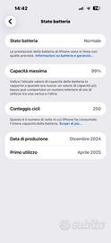 Telefono praticamente nuovo, immacolato, sempre tenuto con cover e pellicola in gel (da €20). Vendo solo per passaggio a nuovo 17 arancio. Telefono acquistato da punto vendita dí elettronica, con regolare fattura di acquisto, garanzia ITALIA, ad aprile deve ancora fare un anno do vita. Quindi pienamente in garanzia, e batteria come visibile in foto al 99%, nuova. Fatemi sapere solo se realmente interessati, grazie.