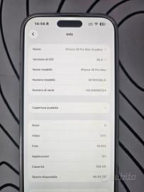 Vendo iPhone 16 Pro Max da 256 GB in colorazione Titanio Sabbia in ottime condizioni. Includo cover trasparente e cavo di ricarica USB-C. Batteria 89%, dura tutta la giornata. Possibile spedizione o ritiro a mano.