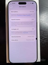 Vendo iPhone 16 Pro Max da 256GB in ottime condizioni generali. 🔋 Batteria al 94% 📸 Fotocamera appena sostituita (nuova e Originale) ✅ Retro (back) perfetto, come nuovo, nemmeno un minimo graffio. ⚠️ Presente un piccolo difetto: un pixel morto sul lato dello schermo (non centrale, poco invasivo nell’uso quotidiano) ⚠️ Alcuni segni/graffi sul profilo laterale e sugli angoli Il display ha qualche graffietto ma nulla di grave 📱 Il telefono è perfettamente funzionante in tutte le sue parti, Face ID incluso. Venduto con la sua scatola originale senza cavo. 💰 Valuto proposte ma non assurde. 📍 Consegna a mano o spedizione disponibile 👉 Scrivimi per qualsiasi informazione o ulteriori foto.