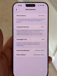 iPhone 16 pro Max 256gb Gold batteria 92% praticamente come nuovo mai portato in assistenza e mai sostituito tutto originale completo di scatola e cavo garanzia scaduta