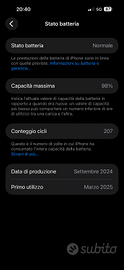 Vendo per passaggio ad altro modello, splendido iphone 16 PRO MAX 256 GB. Batteria al 98 %nessun raschio, nessun difetto, immacolato e come nuovo! Usato sempre con cover e vetro di protezione. Mai caduto. Vendo completo di scatola, e accessori originali. Disponibile a qualsiasi prova. Attivato a marzo 2025 un altro di garanzia del rivenditore autorizzato prezzo non TRATTABILE