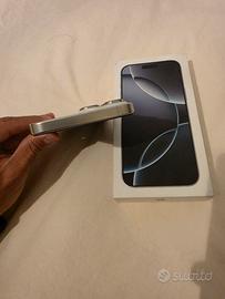 Vendo iPhone 16 Pro Max 256gb, color titanio bianco. Condizioni pari al nuovo, tenuto sempre con cover e pellicola. È presente la copertura assicurativa Prima Protection Plan fino a Novembre 2026 per difetti e danni accidentali. Completo di cavo di ricarica e pacco originale.