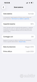 Vendo iPhone 16 Pro Max da 256GB colore nero, in condizioni pari al nuovo. Il telefono è immacolato, senza alcun graffio o segno di usura, sempre utilizzato con cover e pellicola protettiva. Batteria al 96% Garanzia ufficiale Apple valida fino a luglio 2026. Completo di scatola originale e cavo. Fornisco con cover e vetro protettivo. Solo scambio a mano dopo visione Prezzo trattabile