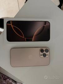 iPhone 16 Pro Max 256GB Titanio Desert, in condizioni perfette pari al nuovo: nessun graffio o segno. Sempre tenuto con cura. Batteria 90% . Completo di scontrino d’acquisto e ancora in garanzia fino a gennaio 2027.