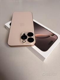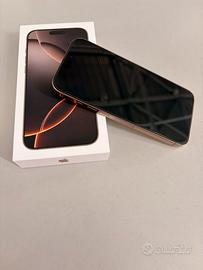 Iphone 16 Pro Max 512 Gb colore titanio Sabbia in perfette condizioni. Non un graffio. Sempre tenuto in maniera maniacale con cover, protezione telecamere (come si vede in foto), e vetro protezione. Batteria al 100%. Acquistato da apple store (con ricevuta) Vendo compreso di scatola originale e cavo ricarica originale.