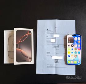 Vendo iphone 16 pro max 512 giga colore desert titatnium utilizzato solo per lavoro. Condizioni perfette come nuovo, sempre con cover e pellicola protettiva schermo. Acquistato il 28/10/24 direttamente presso Apple store, ancora con garanzia apple care +. Batteria al 95%. Prezzo 1.000,00 € (mille euro) INTRATTABILI (e ripeto intrattabile il prezzo non mi chiedete sconti perche il telefono è perfetto). Vendo perchè sono passato a iphone 17 pro max.