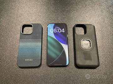 iPhone 16 Pro Max con capacità della batteria al 100%, 200 cicli. Condizioni perfette con 2 custodie, una per moto/bici l'altra è una custodia a basso profilo per in tasca o borsa.