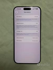 Vendo iPhone 16 Pro Max colore titanio da 256GB in condizioni pari al nuovo, sempre tenuto con cura maniacale. Stato batteria: 89% Acquistato a gennaio 2025 Completo di scatola e accessori Inclusi nel prezzo: Cover MagSafe Cavetto di ricarica originale Possibilità di aggiungere anche alimentatore originale Apple Nessun graffio o difetto, perfettamente funzionante in ogni sua parte. Vendo per passaggio ad altro dispositivo. Prezzo trattabile solo se realmente interessati. Contattami per ulteriori informazioni o foto! Crepa presente sullo schermo causa pellicola (schermo intatto) Garanzia apple care scaduta a gennaio 2026. PREZZO LEGGERMENTE TRATTABILE. CONSEGNA DI PERSONA A BARI E PROVINCIA.
