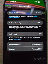 vendo iphone 16 pro max bianco ancora in garanzia massima capacita di batteria 256 GB e scatola regalo anche cover con display per notifiche o schemo esterno no scambi