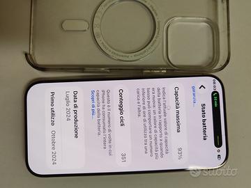 Vendo iPhone 16 pro, 128gb. Smartphone in buono stato con batteria al 93%. Non ha graffi perfettamente funzionante. Vendo a 700