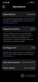Vendo iphone nero 16e 256 gb acquistato a marzo 2025 e quindi con scadenza garanzia marzo 2026. Capacita batteria come in foto
