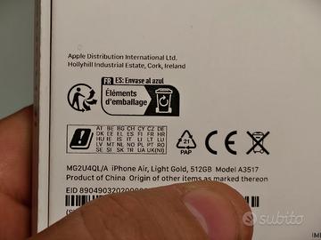 iPhone 17 Air da 512gb, pari al nuovo ricevuto per il compleanno. Il telefono è soltanto stato acceso nella previsione di sostituire un telefono Android ma poi riposto di nuovo nella sua scatola in quanto tutti i backup, whatsapp e altro sarebbero andati persi. Avendo già acquistato un Samsung non accetto scambi ma soltanto la vendita. Il telefono non ha neanche un mese di vita e all'attivo ha circa 2 ore di utilizzo proprio per vedere il menù e l'eventuale passaggio dei dati mai avvenuto. Preferisco scambio alla mano, non spedisco.