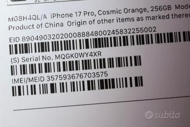 Vendo iPhone 17 Pro 256GB colore Arancione, NUOVO, mai utilizzato.