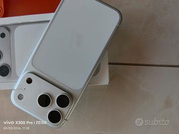 iPhone 17 pro 256 GB pari al nuovo, batteria 100%, nessun graffio e protezione display spogen installata.. tante cover di qualità e originali techwoven nei colori blu, nero e verde.. alcune non sono in foto.. completo di scatola e garanzia fino a settembre 2027