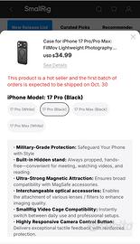 Ho preso questa ottima custodia per gli ultimi iPhone 17 PRO con le caratteristiche che elenco di seguito pensando fosse per il MAX, che ho comprato. Rispedirlo in cina mi costerebbe di piu dei soldi che mi darebbero dietro quindi preferisco venerlo anche se poco meno del prezzo a cui l’ho comprato (il prezzo in dollari che si vede in foto e sul loro sito è senza IVA che viene aggiunta per un totale di circa 44€)