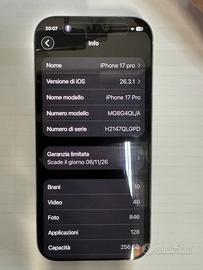 Iphone 17 pro 256 gb perfetto, immacolato! Acquistato a novembre da Mediaworld, con regolare ricevuta quindi garanzia 2 anni. Completo di scatola vetrino per le telecamere, cover trasparente e appena messa pellicola privacy! Naturalmente batteria 100%.