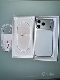 Cone da titolo vendo iphone 17 pro max 1 mese di vita. Il telefono conta 4 cicli di batteria. Compreso di scatola e fattura di acquisto