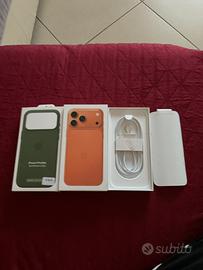 Salve vendo nuovissimo iPhone 17 Pro Max di colore arancione cosmico e di 2TB dí archiviazione spazio compresa di pellicola originale Belkin e cover originale apple in tessuto techwoven di colore verde e protezione fotocamera, ancora in garanzia in scadenza 18 settembre 2026. Il telefono e tenuto maniacale pulito senza graffi pari al nuovo 6 mesi da quando lo ho acquistato scatola e accessori ancora intatti, per interessati non perditempo prezzo non trattabile.
