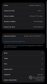 VENDO IPHONE 17 PRO MAX 12/256GB NUOVO PREZZO NON TRATTABILE ZONA CECCANO WHATSAPP 3484204233 DANIELE
