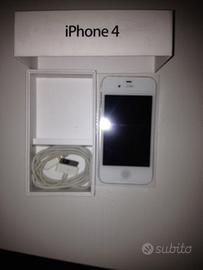 Vendo I-Phone 4 da 16 Gb BIANCO ( NO "S" ) perfetto con display e retro NUOVI. Completo di scatola originale e caricabatteria. Come da foto allegate. Prodotto ORIGINALE APPLE. NON FACCIO SCAMBI e NON SPEDISCO.