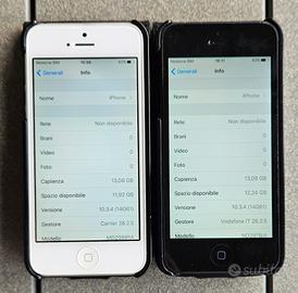 Vendo coppia di iPhone 5 da 16GB completamente originali e perfettamente funzionanti (mai riparati) di colore NERO e BIANCO completi di cover in pelle nera a libretto e alimentatori con cavo usb/lightning.