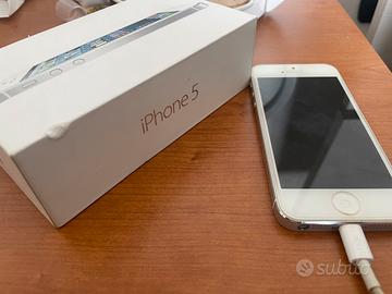 iPhone 5 Silver 16GB Funzionante - Con Scatola Originale e Caricatore Apple. Nonostante manchino cuffie e adesivi, includo il caricatore originale Apple del mio iPhone 12 pro (fondamentale per preservare la salute della batteria rispetto ai cavi economici) e la sua scatola originale. iPhone senza blocchi e funzionante. Piccola ammaccatura sulla scatola che si osserva nella foto. Consegna a mano a Lucca, Pistoia, Quarrata e dintorni