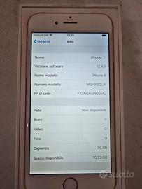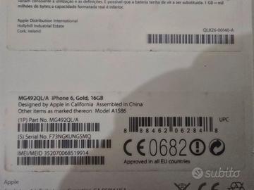 Iphone 6 gold oro 16 GB usato ma in ottime condizioni. È rimasto inutilizzato per anni ma funziona perfettamente. Batteria senza problemi. Completo di tutto in foto.