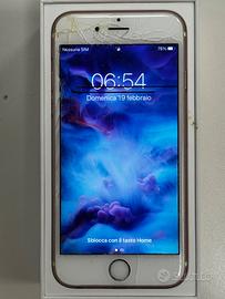 iPhone 6 S colore rose gold, 64 gb, in funzionante con display rotto, poca capacità batteria. Senza accessori.