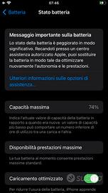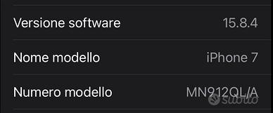 iPhone 7 usato tenuto bene senza graffi importanti. IOS 15.8.4, batteria con capacità massima di 74%.